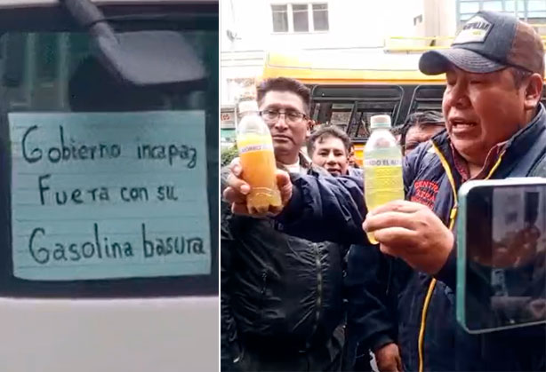 Mostraron en botellas ejemplos del combustible, al cual acusaron de generar daños en sus vehículos. Lamentaron que tienen miedo de encender los coches en esta situación.