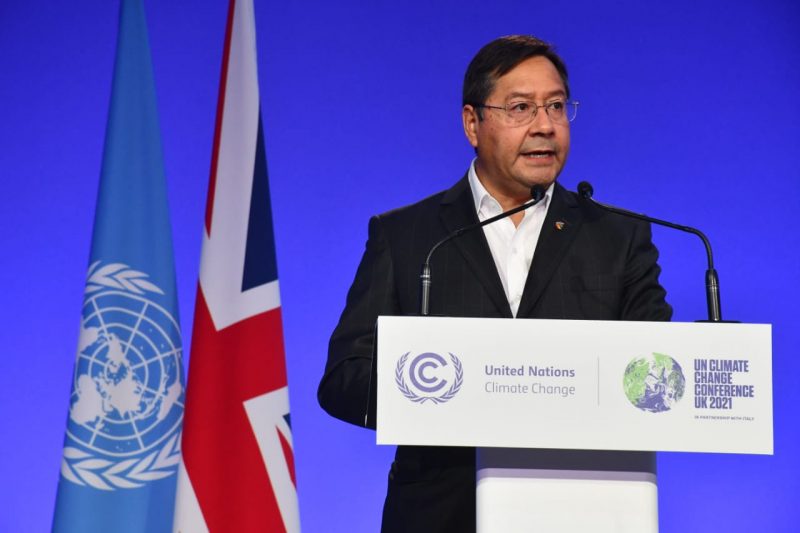 "Como Bolivia, estamos concluyendo la preparación de una Contribución Nacionalmente Determinada hacia 2030 que ratifica nuestro compromiso nacional contra la crisis climática en los sectores de agua, energía, bosques y agropecuaria", dijo en su alocución el Presidente.